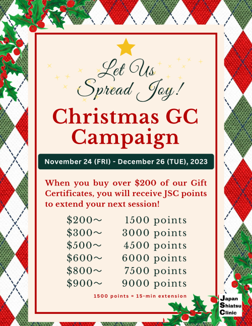 Holiday season is fast approaching! If you need some gift ideas, we’ve got it covered! How about a relaxing Shiatsu session for your loved ones this year?